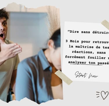 Il est surtout question d'un vrai travail de connaissance de soi par un échange et un questionnement guidé pour mettre en lumière les blocages, les déclencheurs de crises, les blessures pour ensuite travailler dessus, s'en délester, les dissiper et retrouver séance après séance, confiance, maîtrise et légèreté.